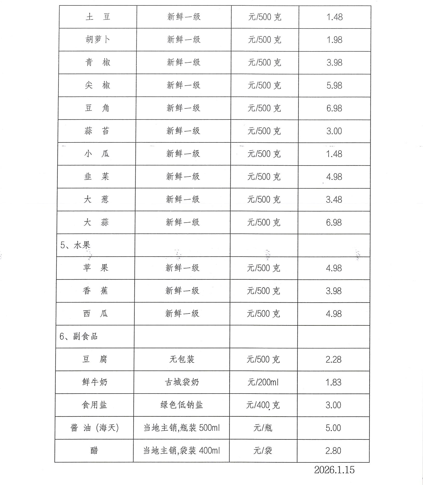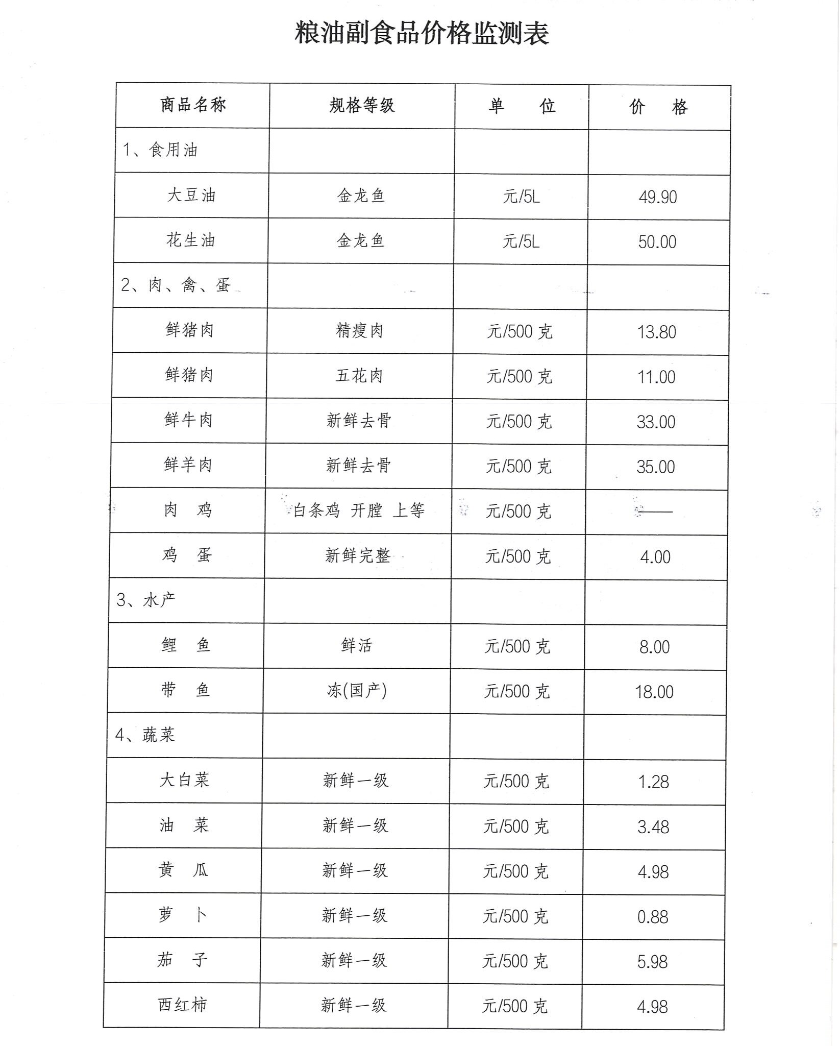 粮油副食品价格监测表.doc