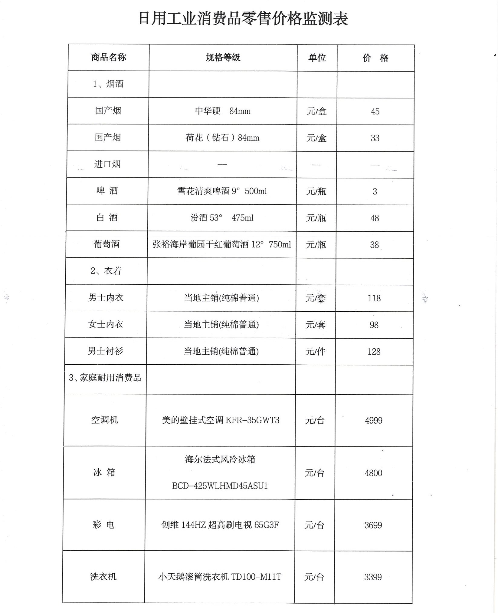 日用工业消费品零售价格监测表.doc