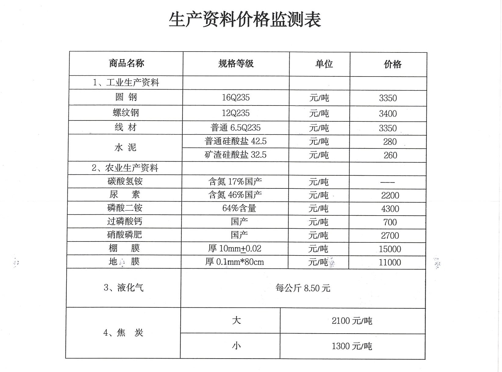生产资料价格监测表.doc