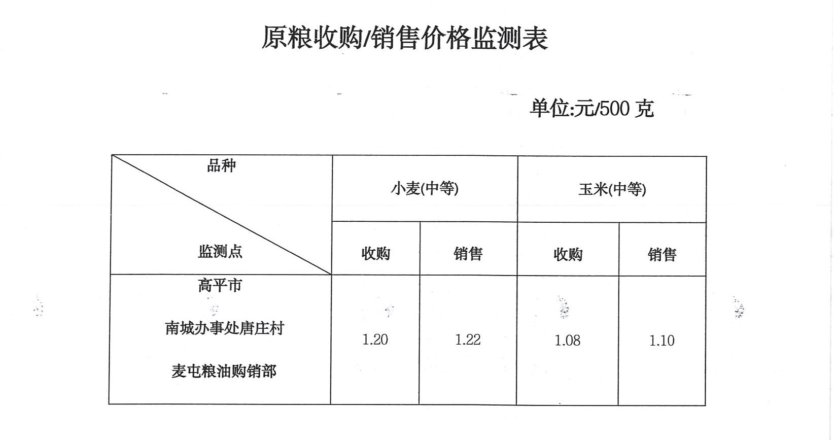 原粮收购销售价格监测表.doc