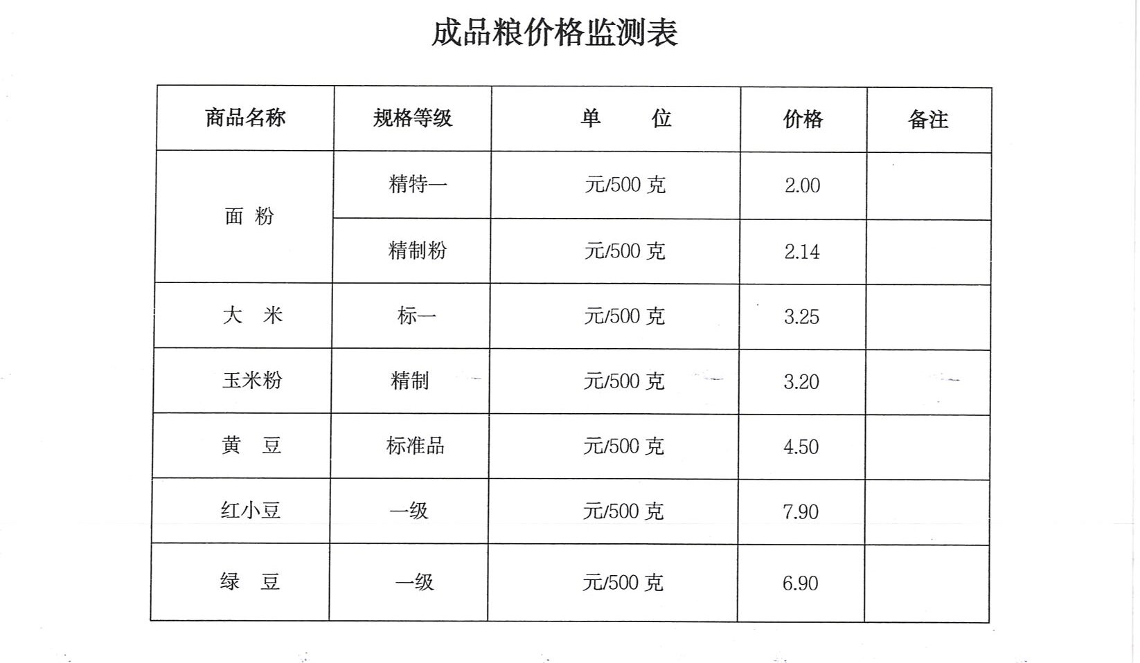 成品粮价格监测表.doc