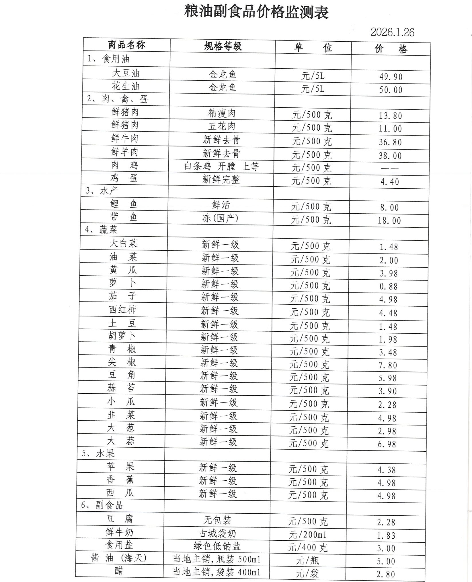 粮油副食品价格监测表.doc