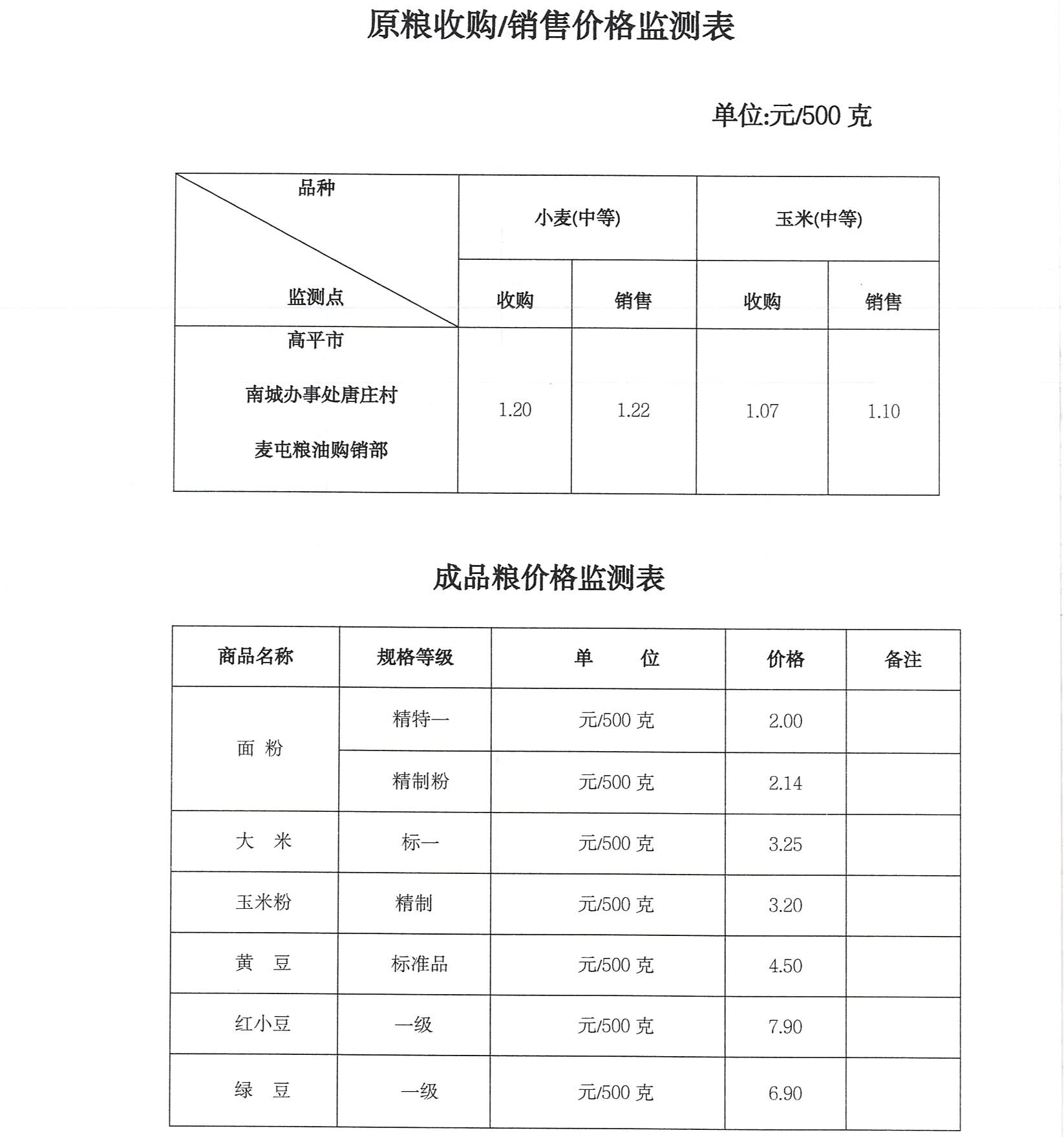 原粮收购销售价格监测表.doc