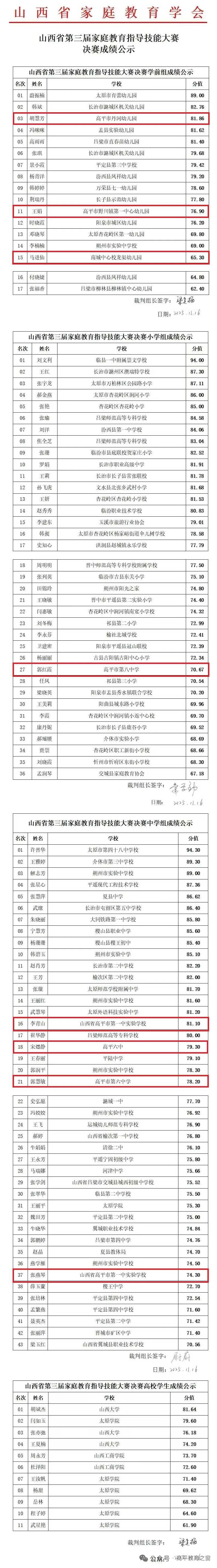 山西省第三届家庭教育指导技能大赛省级决赛的赛场角逐已圆满落幕,每一份精彩都离不开全体选手的全力以赴与专业深耕。现将山西省第三届家庭教育指导技能大赛省级决赛的成绩公布。