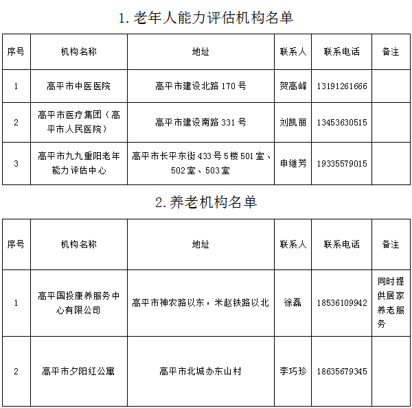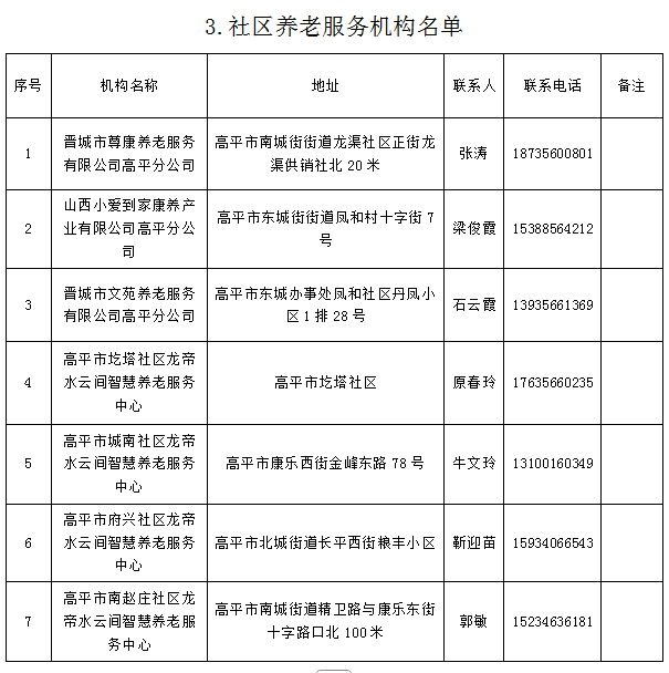 提供养老服务的养老机构和社区养老服务机构结果的通告