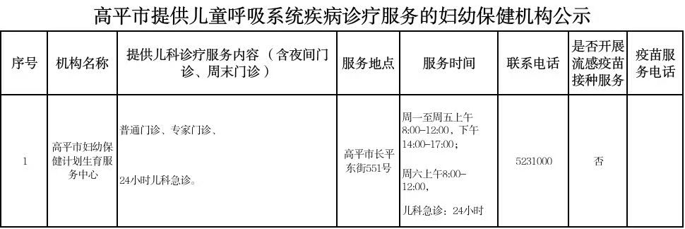 高平市提供儿童呼吸系统疾病诊疗服务的妇幼保健机构公示