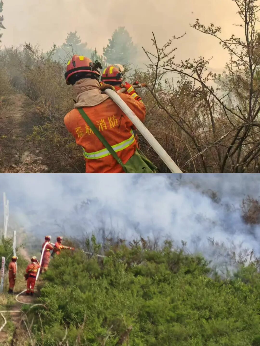 火情就是命令,火场就是战场。6月9日深夜,救援队伍到达一线火场后,立即穿戴装具、调试装备进入火场。面对火场陡峭坡度、浓烟遮蔽视线的险情,指挥部紧急抽调骨干组成“突击队”,采用以水灭火的方式,在火线长3000米的陡坡铺设管道2000余米,近距离用高压水枪压制火势,顶着高温向前推进。