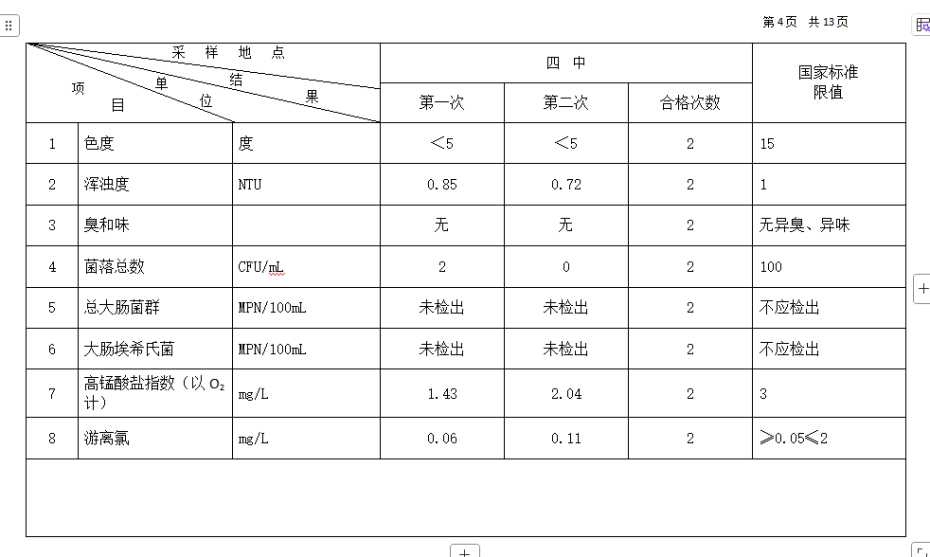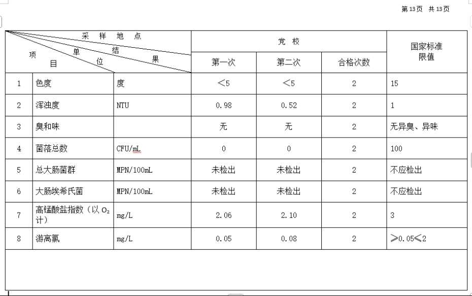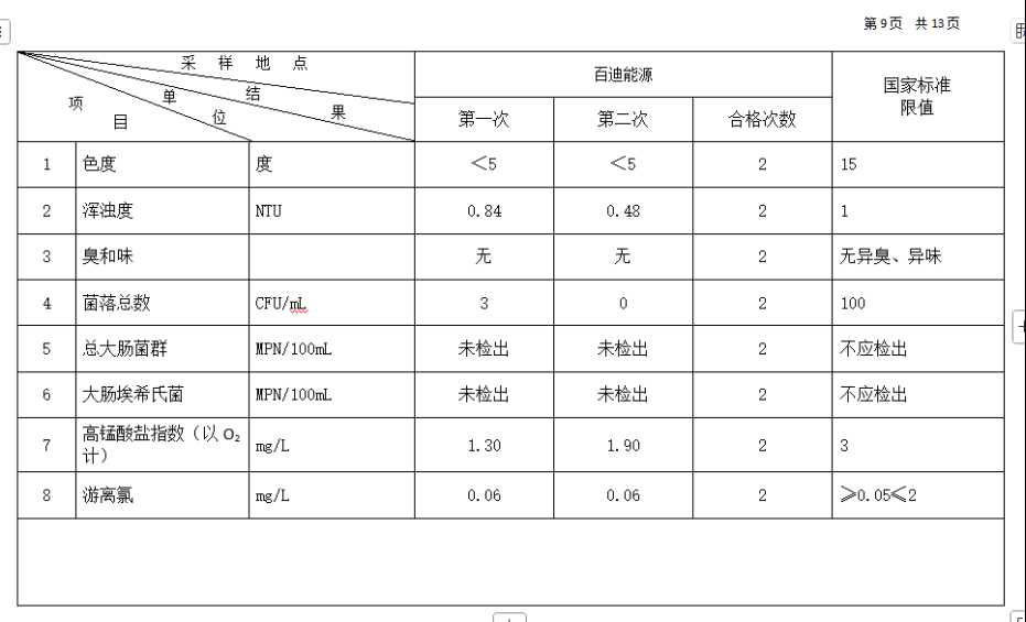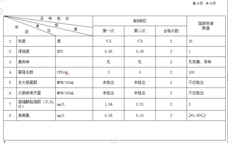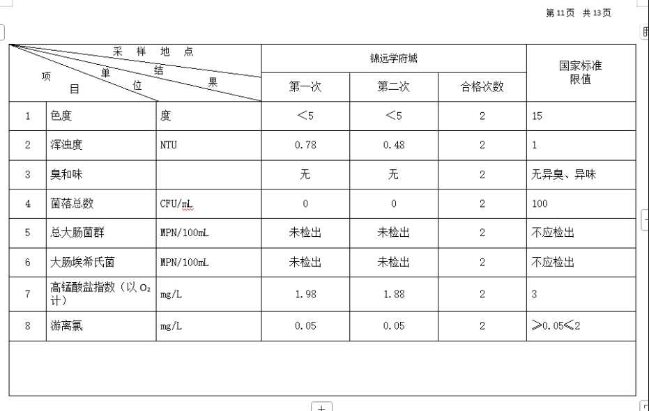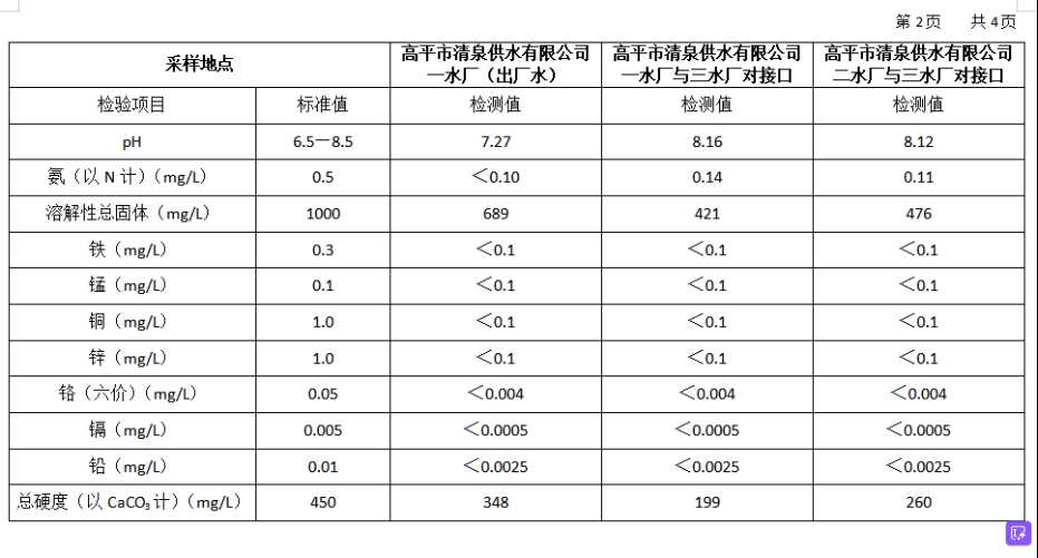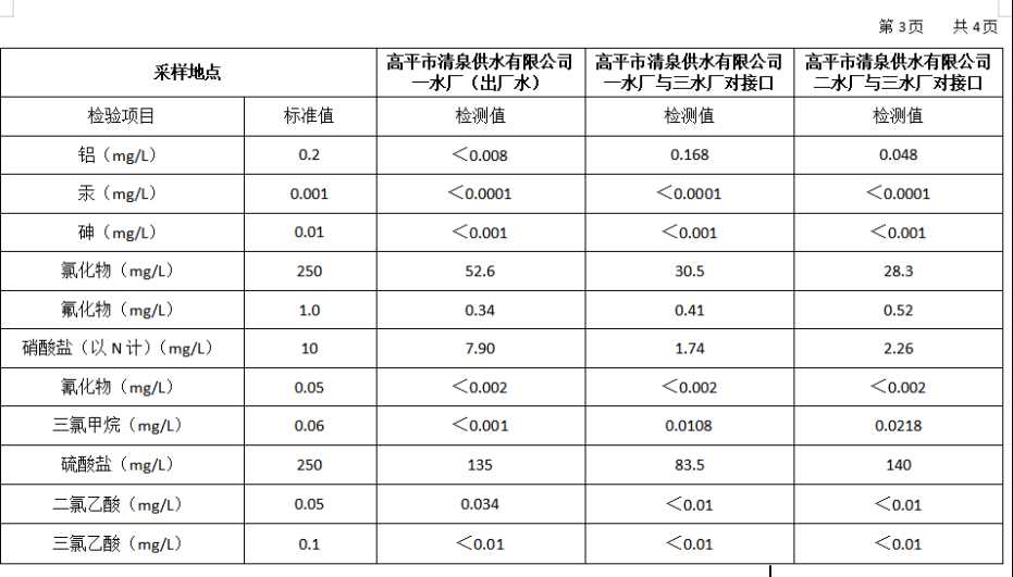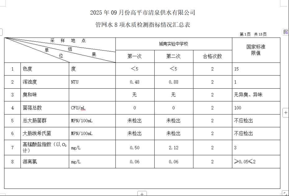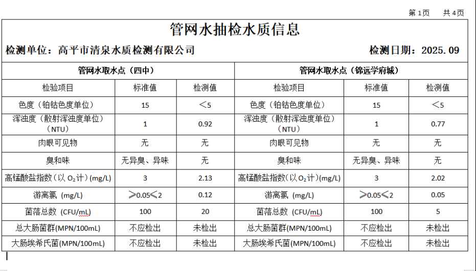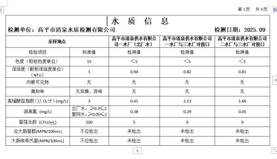 高平市清泉供水有限公司2025年9月份城市集中供水水质信息