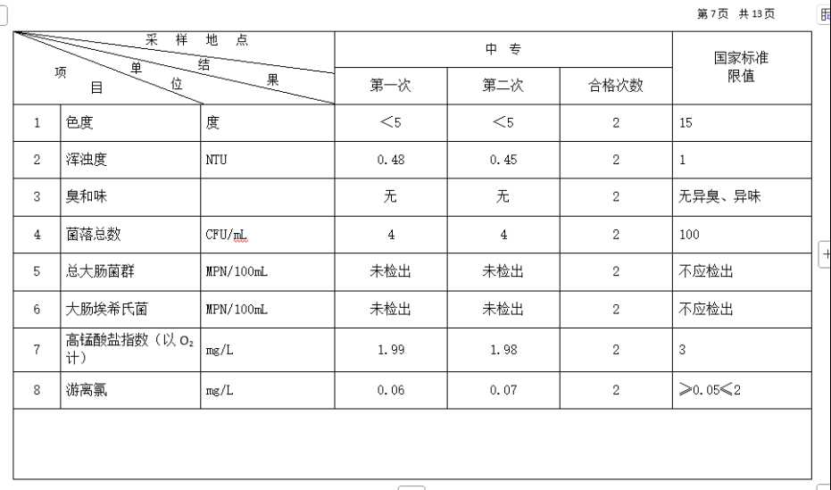 2025年9月份高平市清泉供水有限公司管网水7项水质检测指标情况汇总表.docx