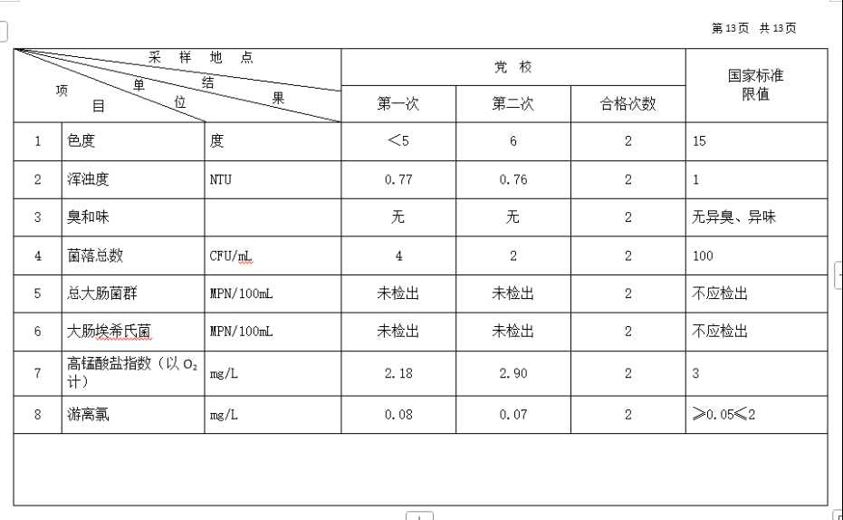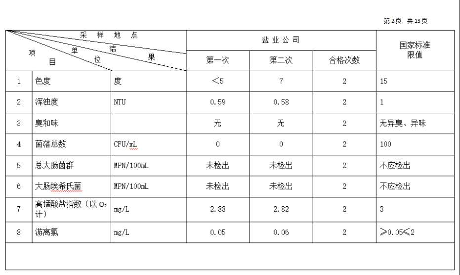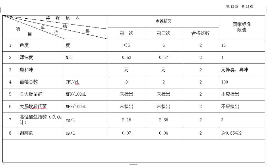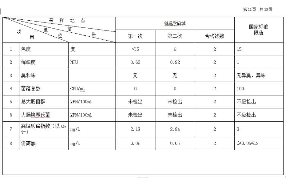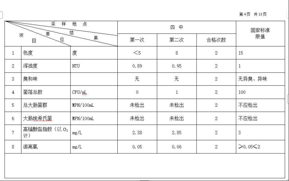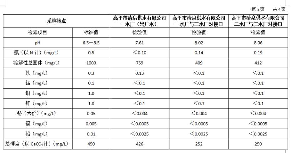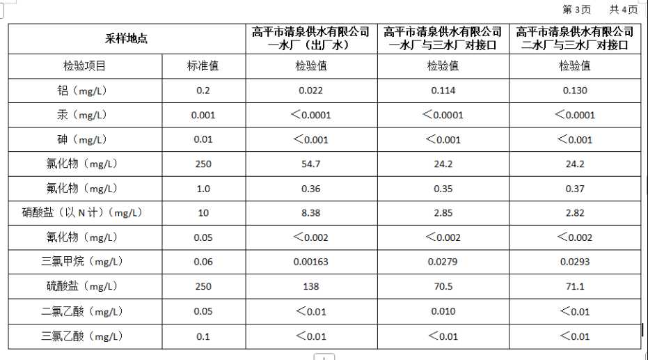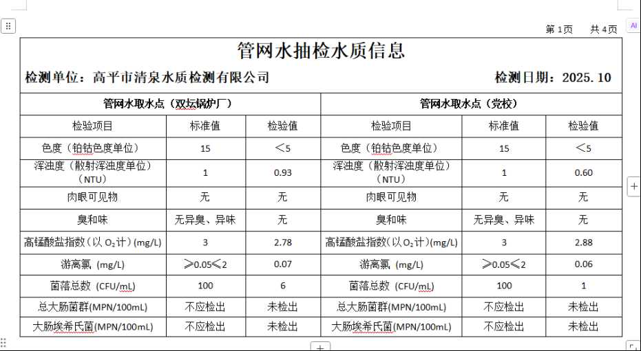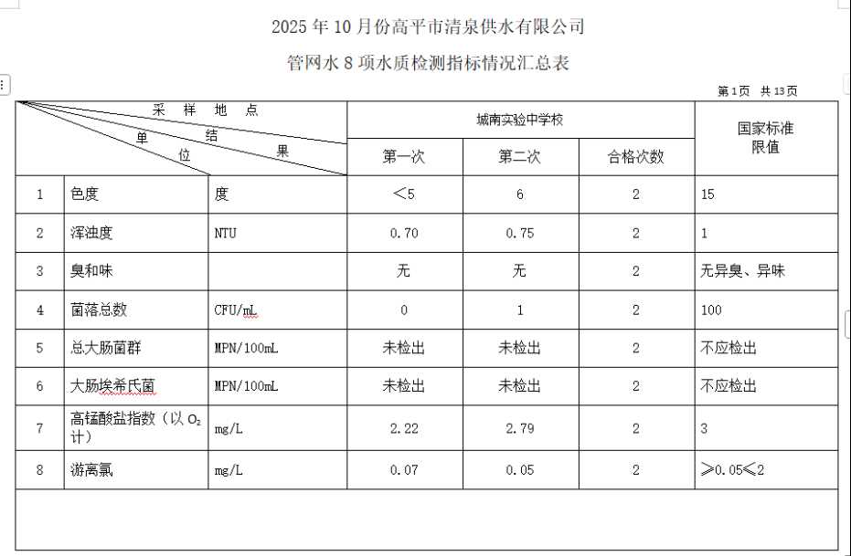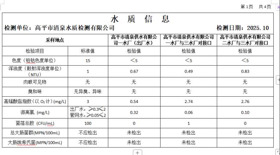 高平市清泉供水有限公司2025年10月份城市集中供水水质信息