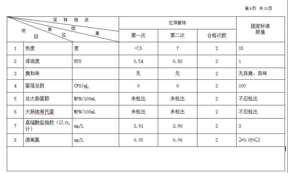 2025年10月份高平市清泉供水有限公司管网水8项水质检测指标情况汇总表.docx