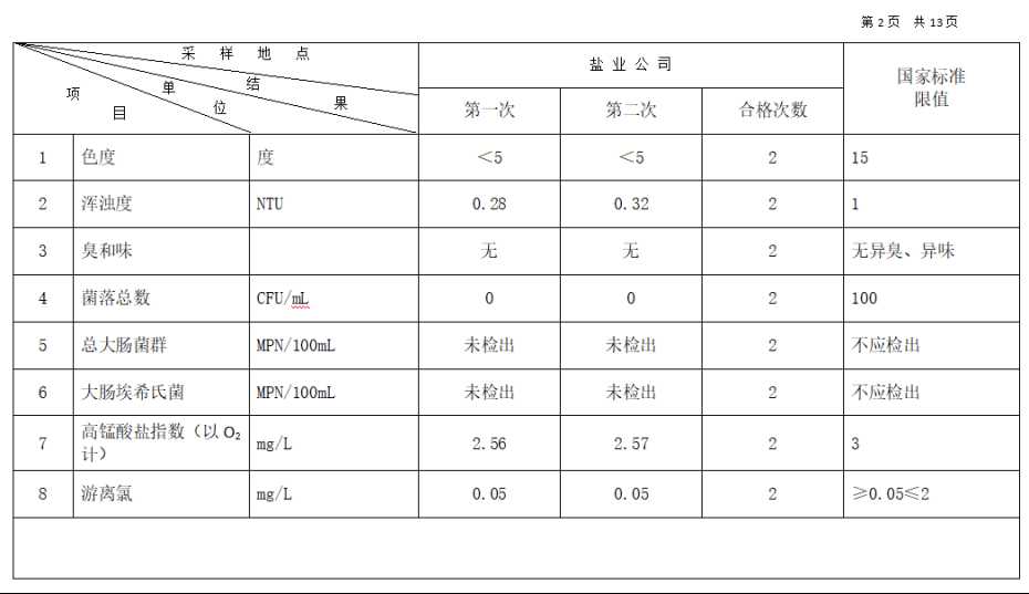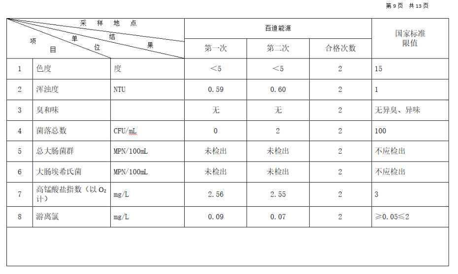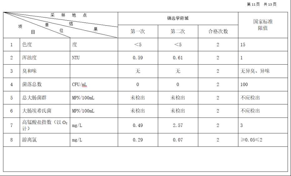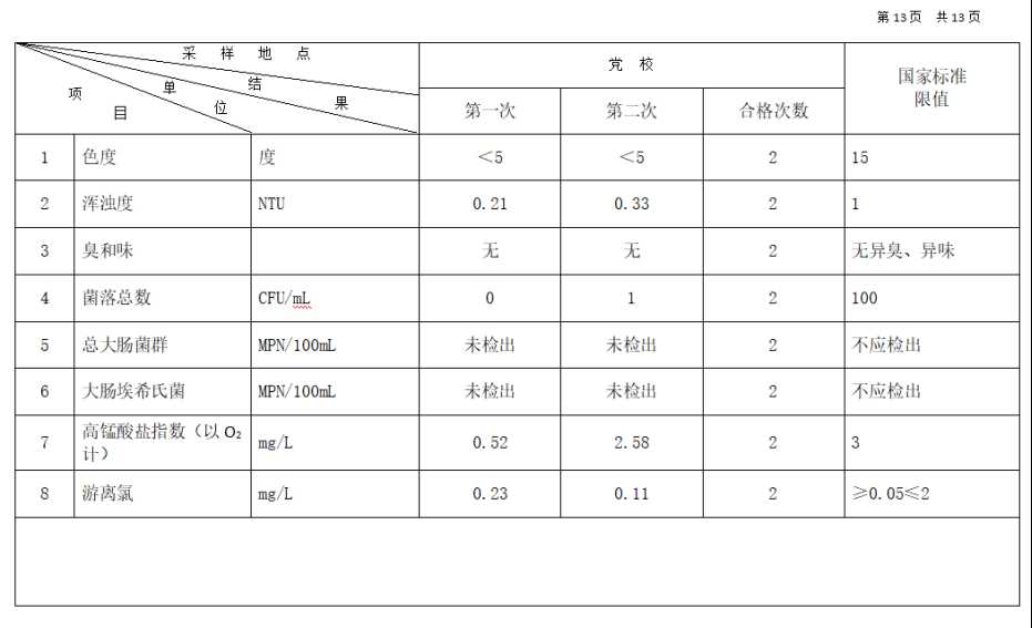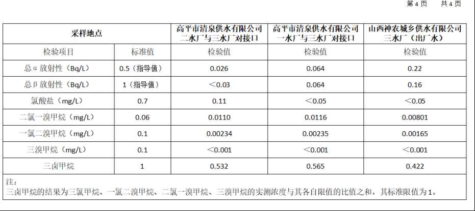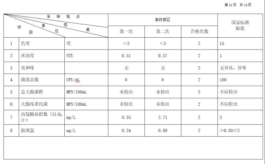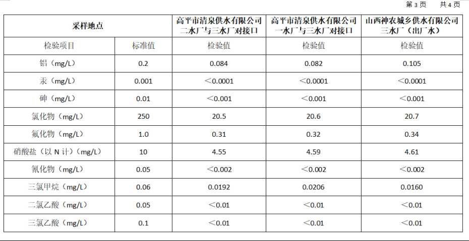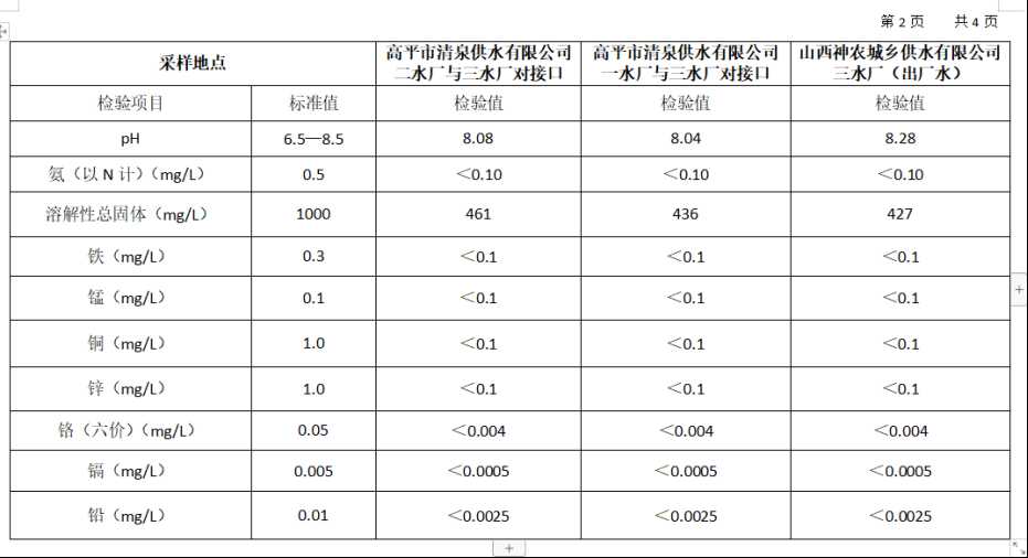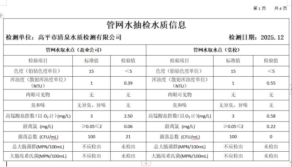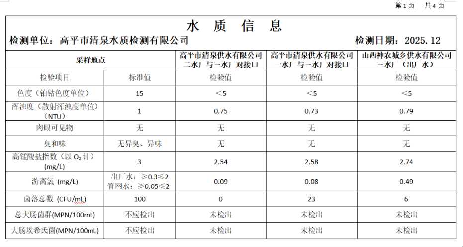 高平市清泉供水有限公司2025年12月份城市集中供水水质信息