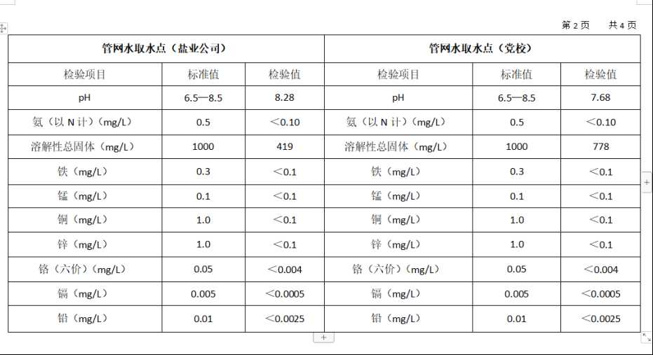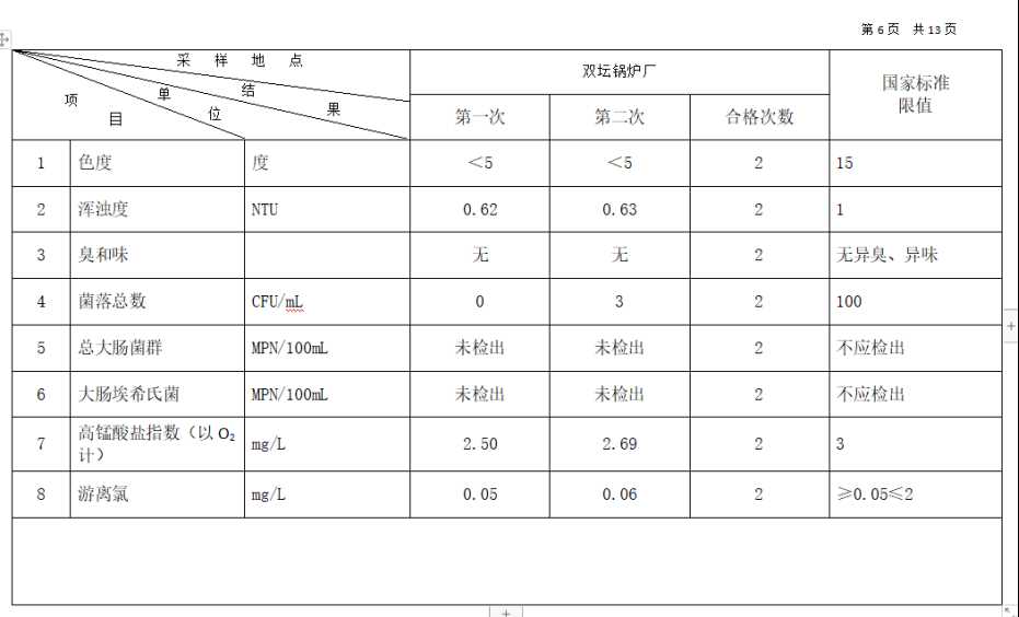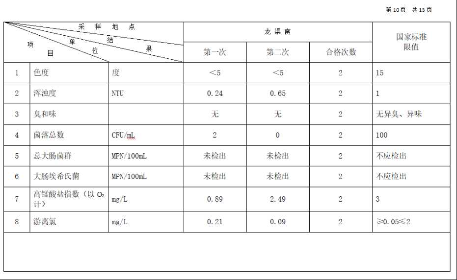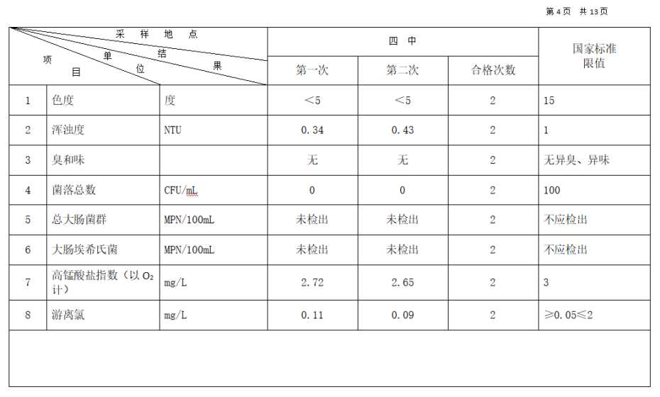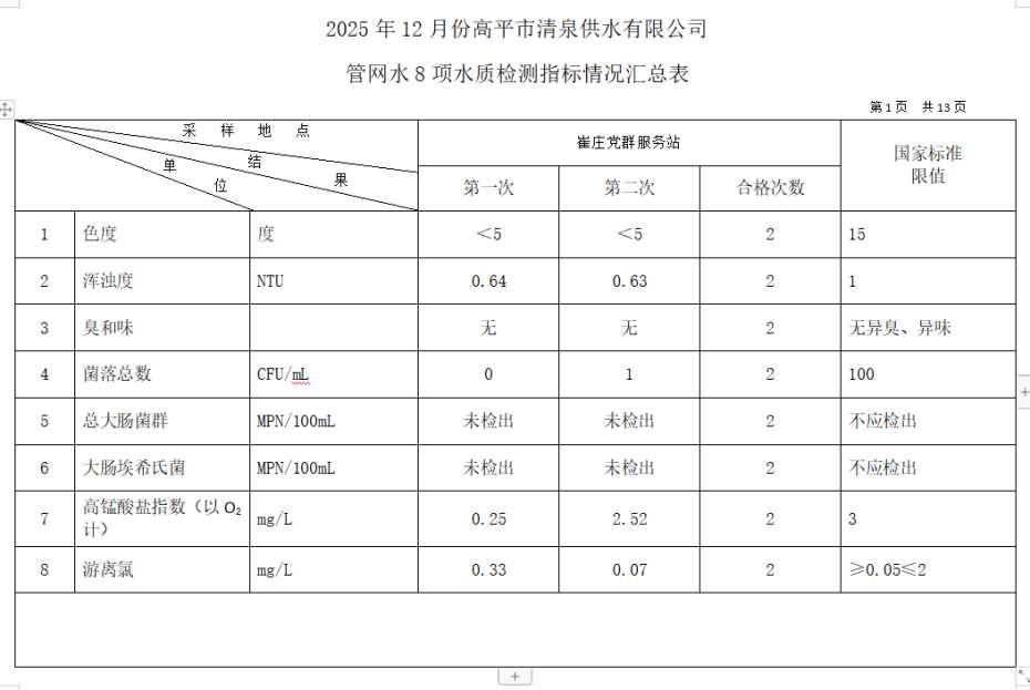 2025年12月份高平市清泉供水有限公司管网水8项水质检测指标情况汇总表.docx