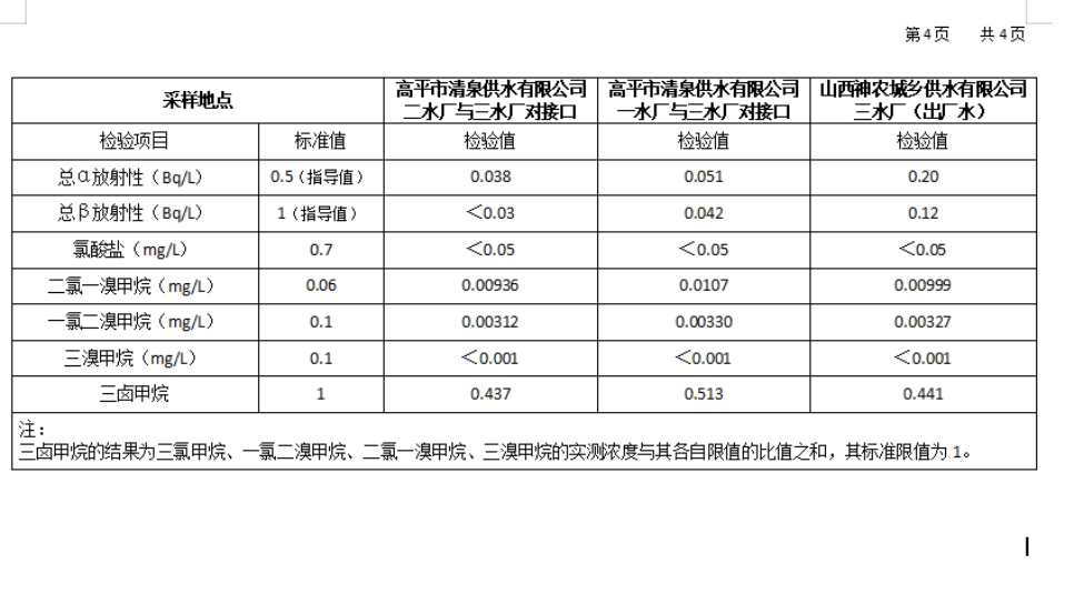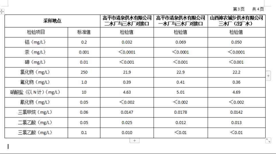 2026年1月份高平市清泉供水有限公司水质、管网水质信息.doc