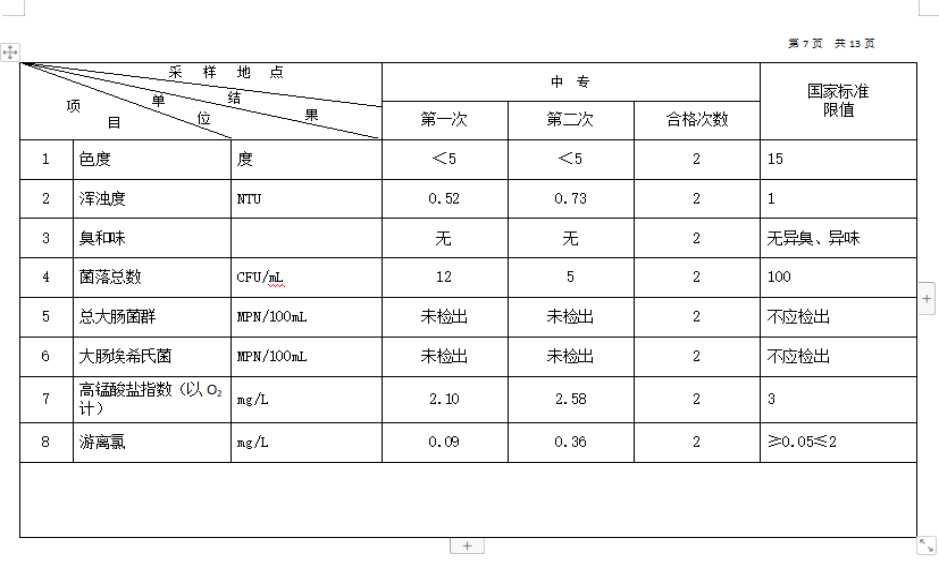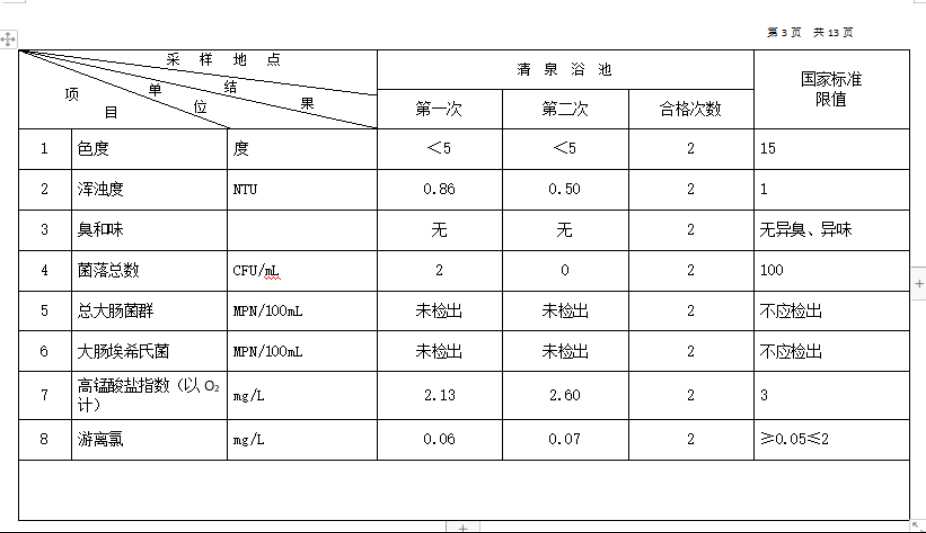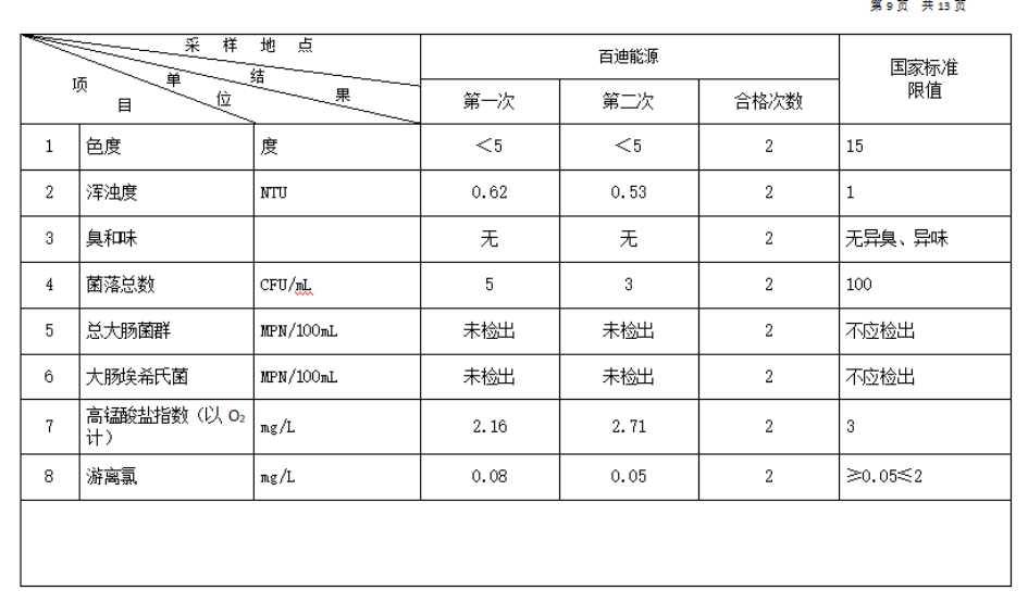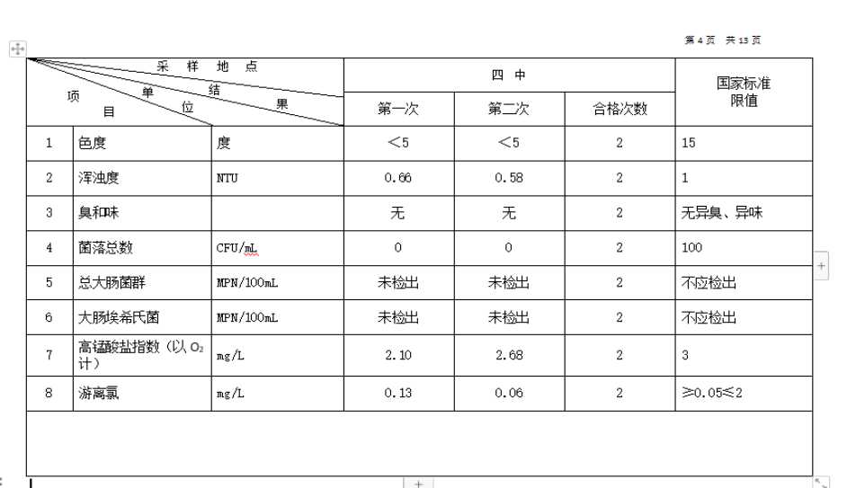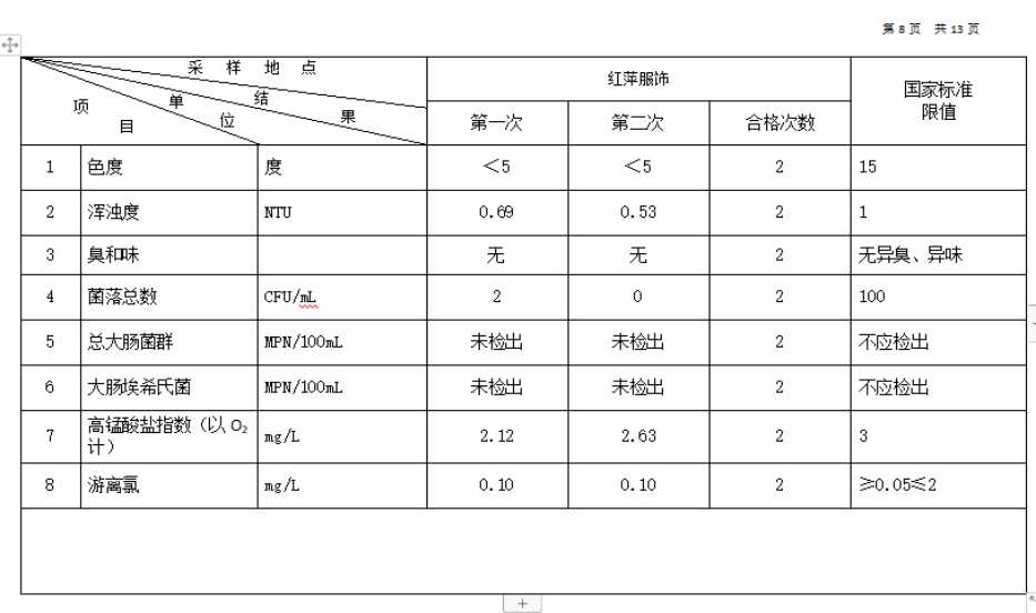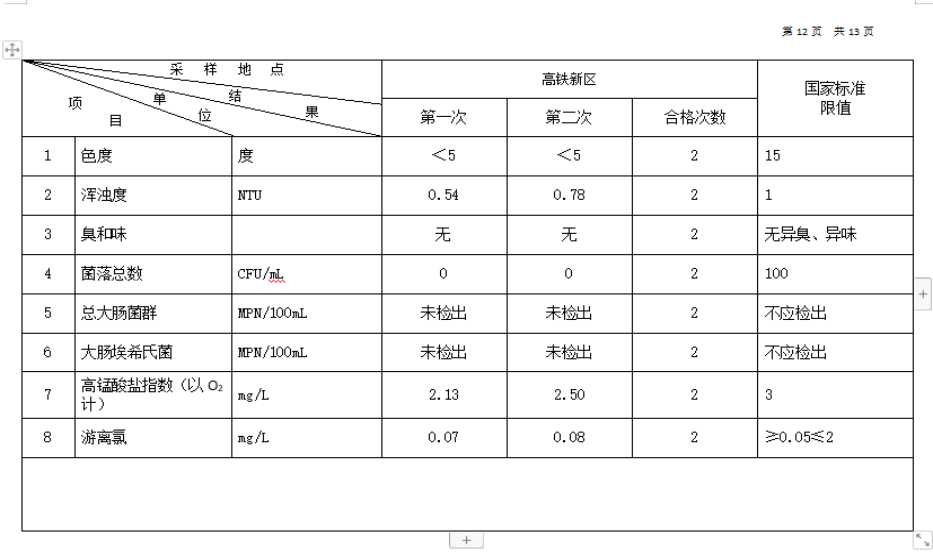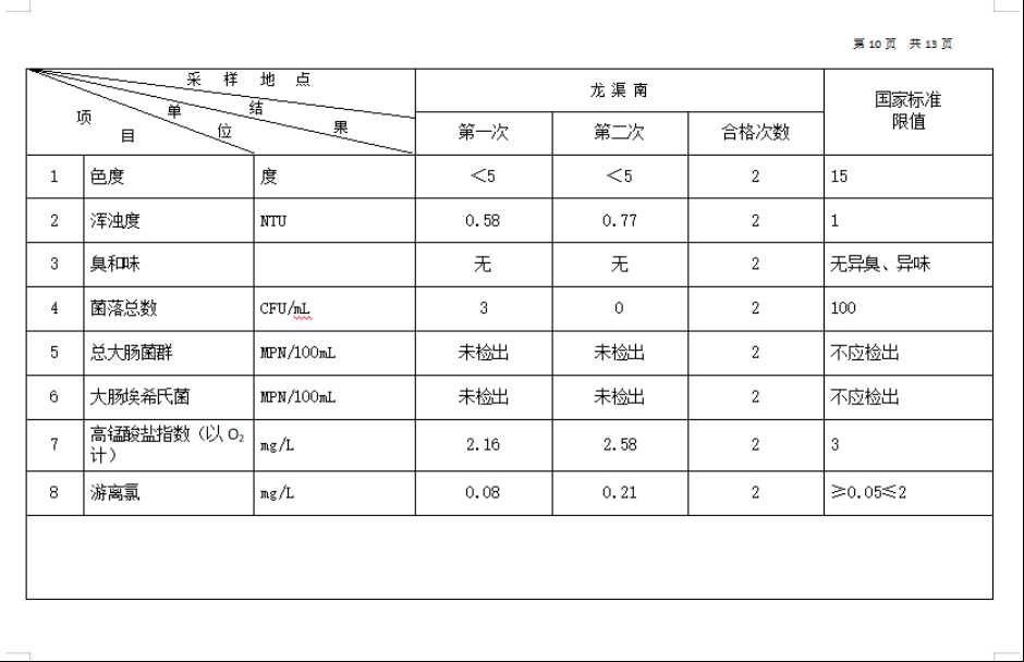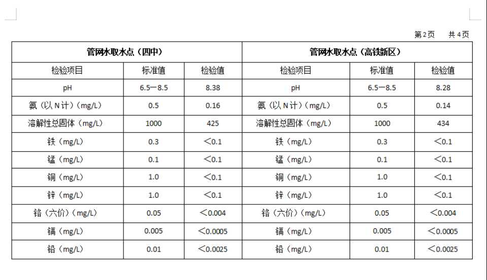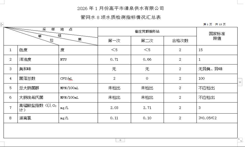 2026年1月份高平市清泉供水有限公司管网水8项水质检测指标情况汇总表.docx