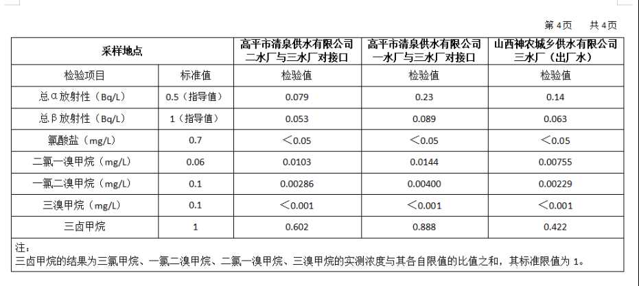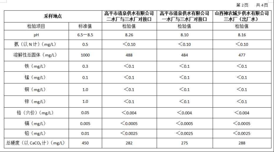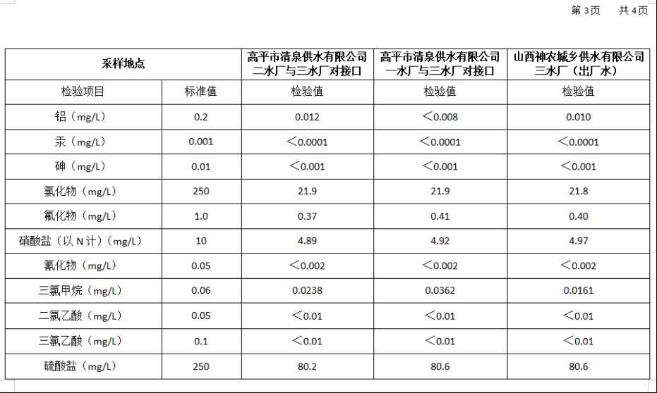 2026年3月份高平市清泉供水有限公司水质、管网水质信息.doc