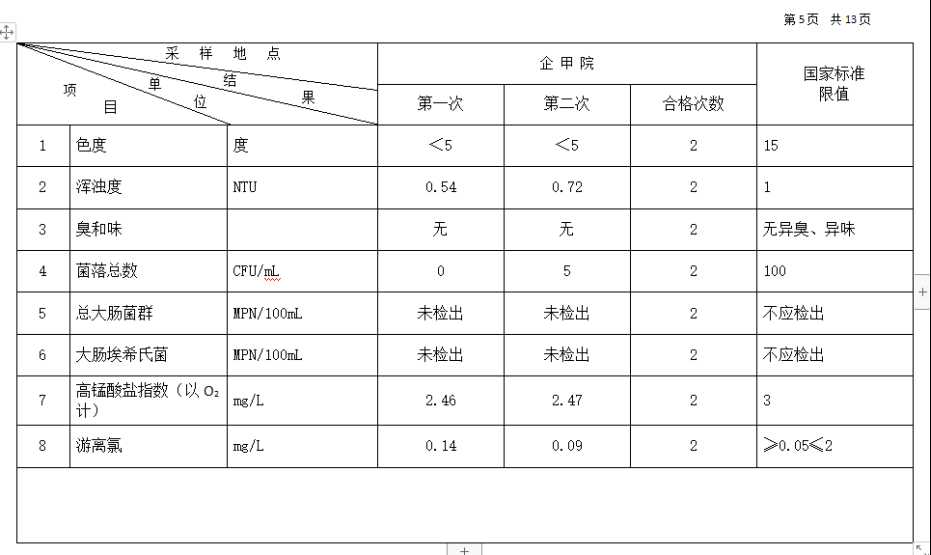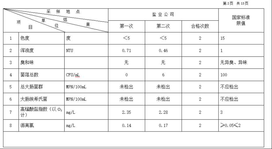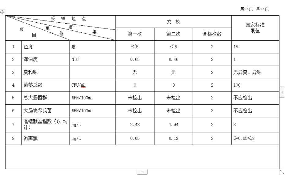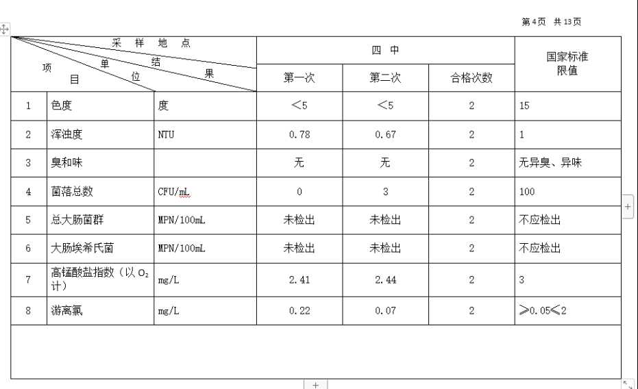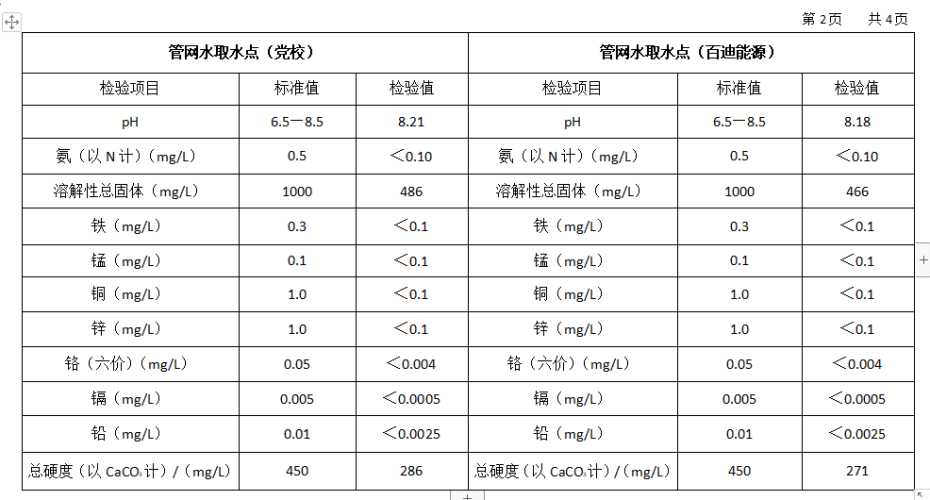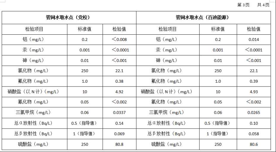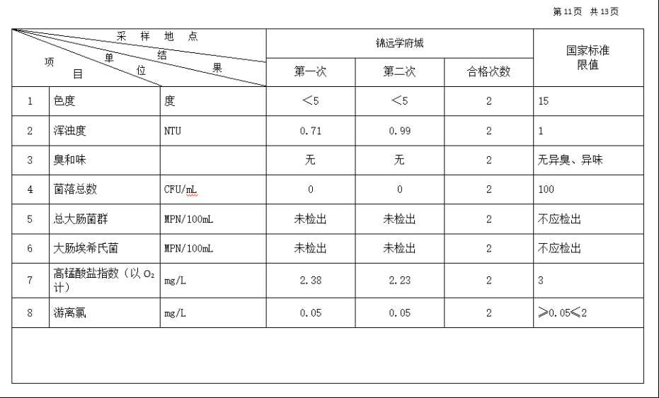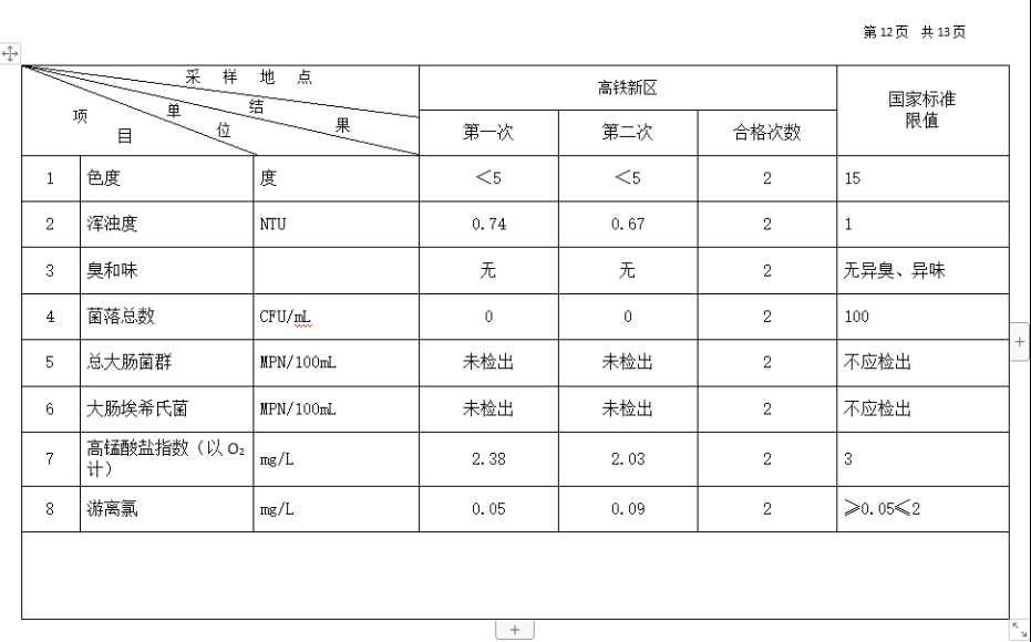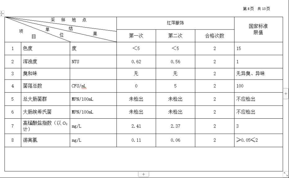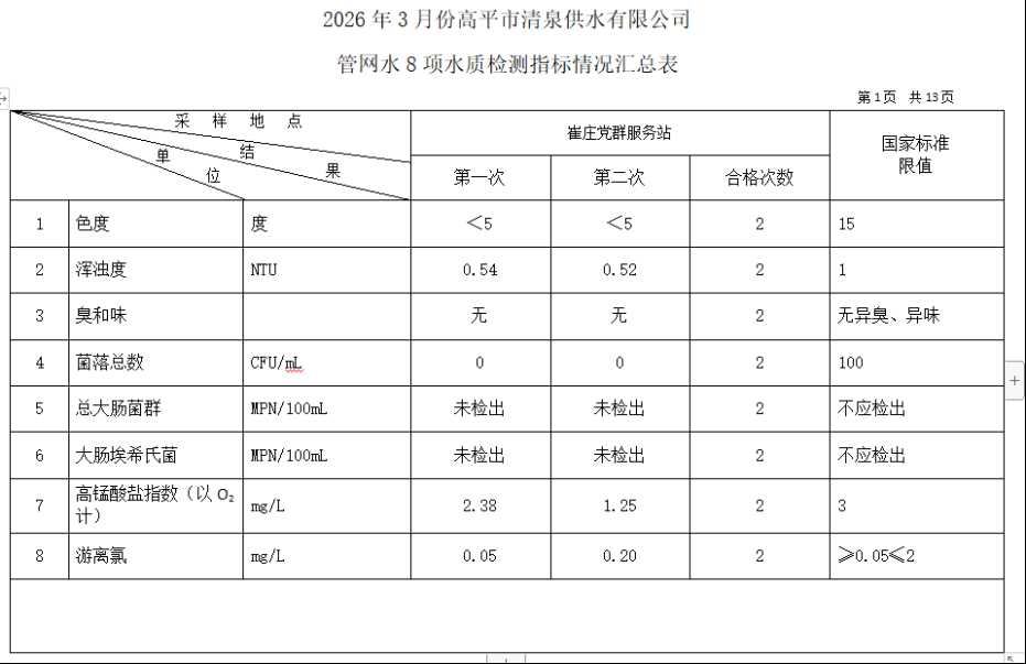 2026年3月份高平市清泉供水有限公司管网水8项水质检测指标情况汇总表.docx