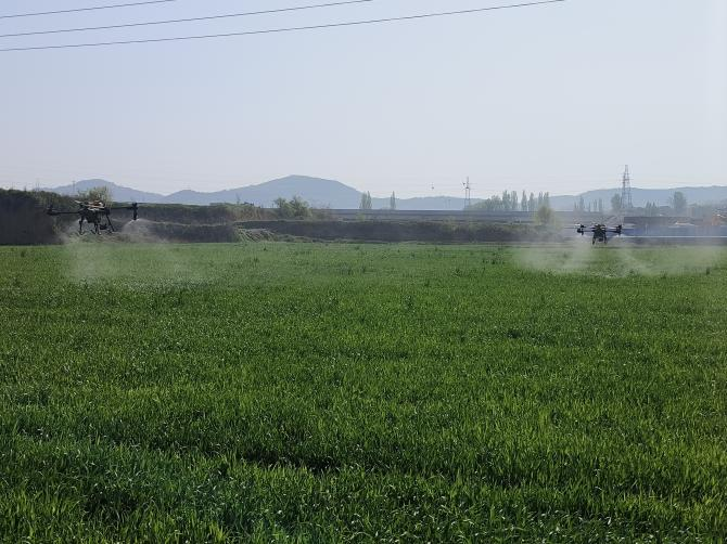 针对近期小麦生长实际情况,我镇组织农技人员深入田间地头,实地排查苗情、墒情,精准掌握小麦长势,结合地块差异,科学制定飞防作业方案。本次飞防作业主要喷施叶面肥、营养调节剂等农资,补充小麦生长所需养分,增强麦苗根系活力,促进分蘖生长,快速改善弱苗、黄苗长势,同时提升小麦抗寒、抗病、抗倒伏能力,实现补肥壮苗、提质增效的效果。