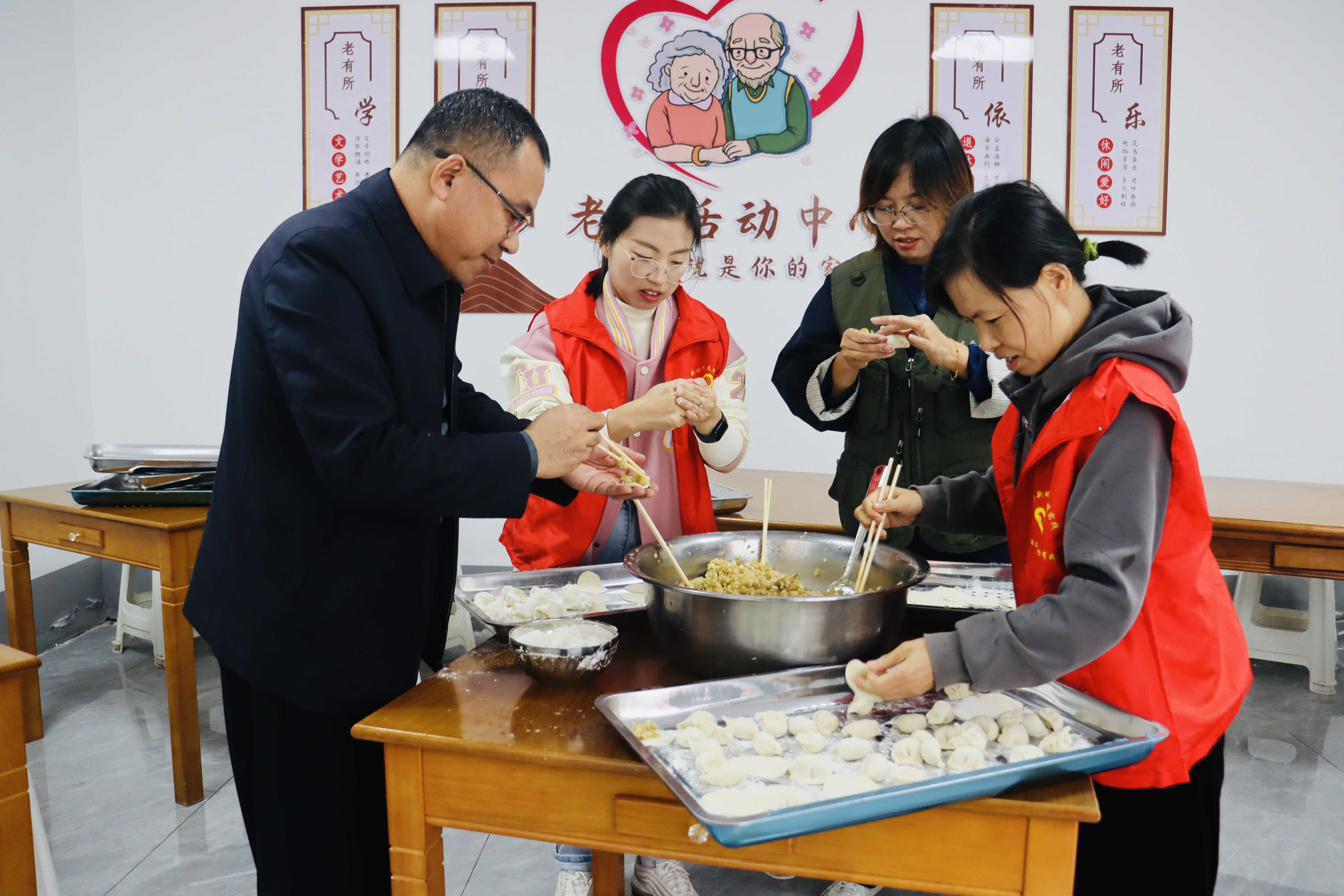 上午10点左右,村两委干部和志愿者们便开始忙碌起来,他们分工明确,有的和面,有的擀皮,有的拌馅,有的包饺子,现场气氛热烈而有序。大家齐心协力,就是为了确保老人们能够按时吃上一顿热气腾腾的午饭。