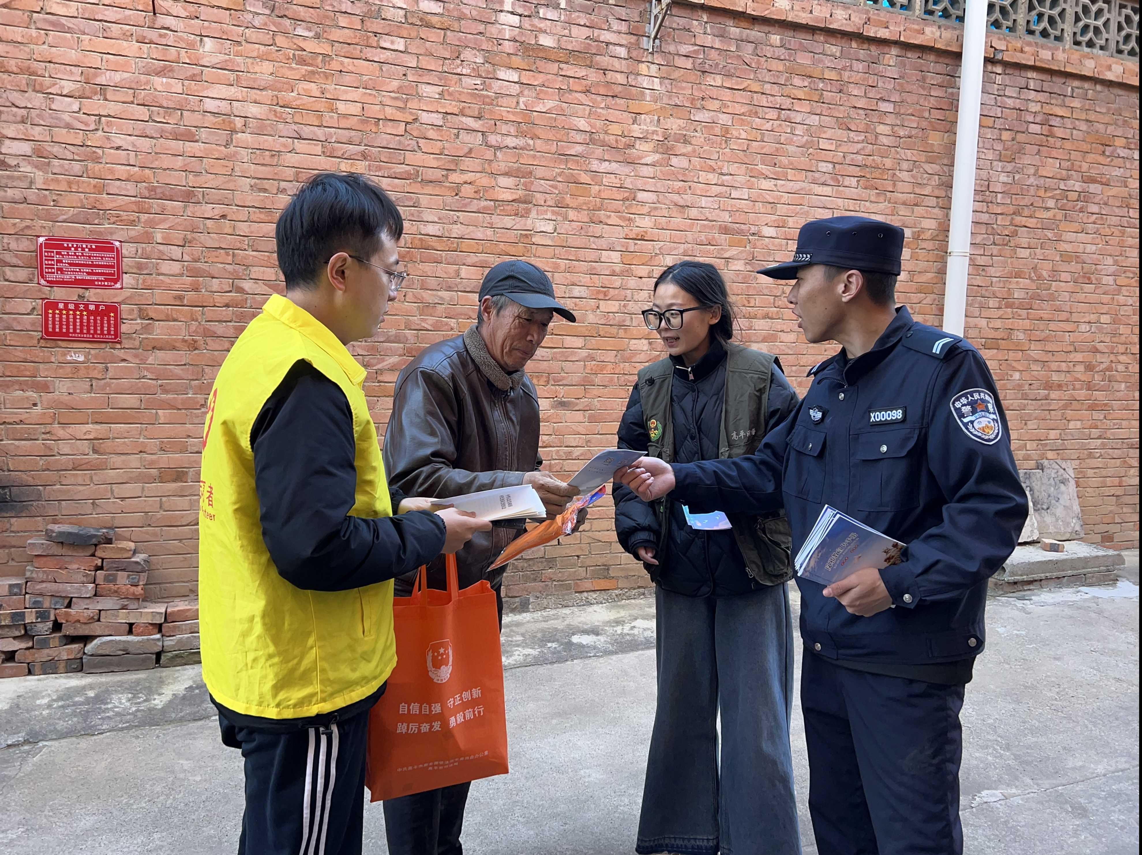 在双泉村的街头巷角,宣传小队刚走到王大娘家门口,就被围坐晒太阳的几位老人围住。“前阵子邻村张叔就被‘冒充社保局’的电话骗走了两千块!”民警拿着本地案例宣传单,指着上面的细节说,“凡是让你‘先转账验证身份’的,全是骗子!”网格员王晋芳则递上印着反诈口诀的宣传袋,帮老人把“不轻易点链接、不盲目转钱款”的要点念了一遍。